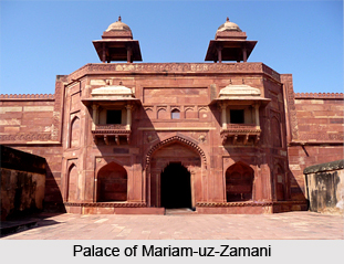 Mariam-uz-Zamani`s marriage with Akbar inspired the Mughal emperor to obtain a wider view of all aspects of Hinduism and his Hindu subjects. On 6th February, 1562 Mariam-uz-Zamani or Heer Kunwari`s hand was offered in wedlock to Akbar according to a political treaty at Sambhar close to Jaipur in Rajasthan. Thus she became the third and chief wife of Akbar after his first wife, Ruqaiya Sultan Begum and second wife, Salima Sultan Begum who was Bairam Khan`s widow. During the initial phase of 1569, Akbar learnt that Mariam was expecting a child and immediately sent her to the humble residence of Sheikh Salim Chisti, a famous holy man who lived in Sikri. The prince Jahangir was born on 30th August, 1569 and was named `Salim` after the holy man Sheikh Salim Chisti, who was greatly revered by Akbar.